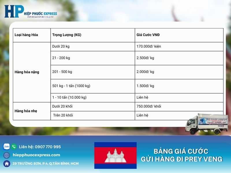 Bảng Giá Cước Phí Vận Chuyển Hàng Sang Prey Veng Cập Nhật 2025